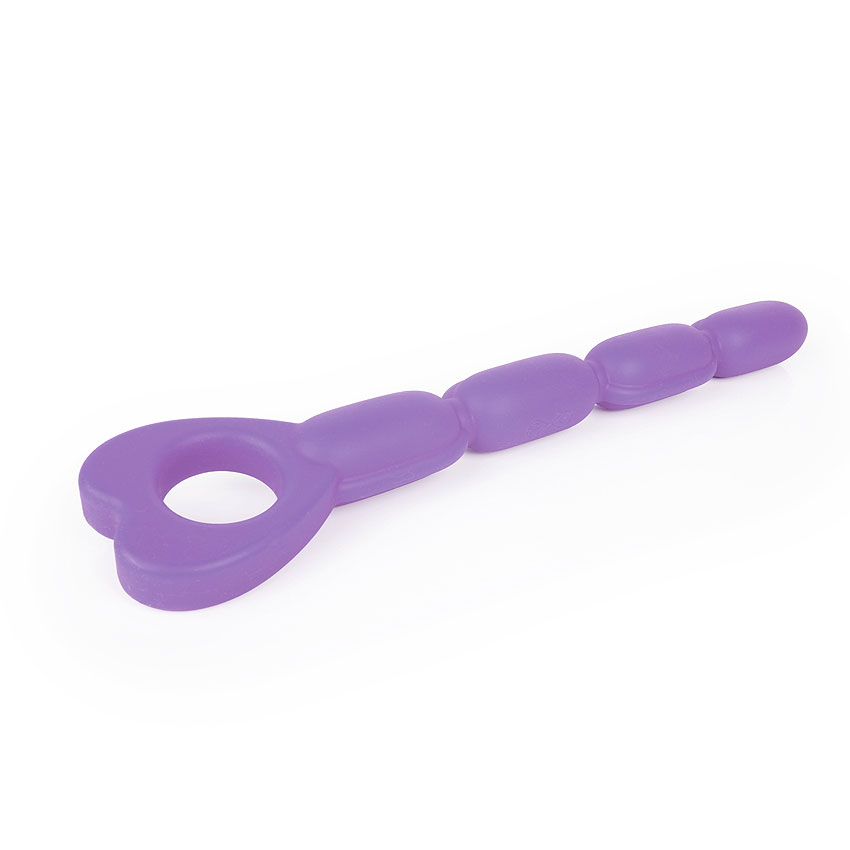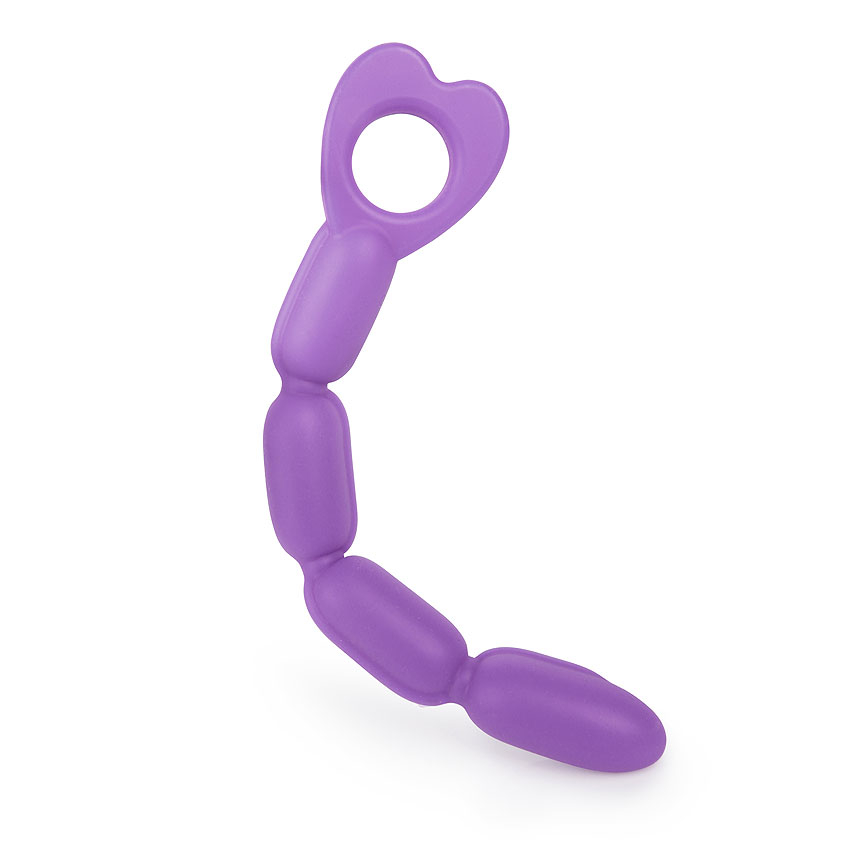 Интимный аксессуар выполнен в форме «цепочки», имеет ручку-кольцо, которая позволяет контролировать глубину проникновения и легко извлекать изделие. При необходимости может сгибаться, принимая нужную форму.