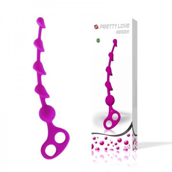 анальная игрушка фиолетового цвета изготовлена из медицинского силикона. дополнена бусинами разного размера.