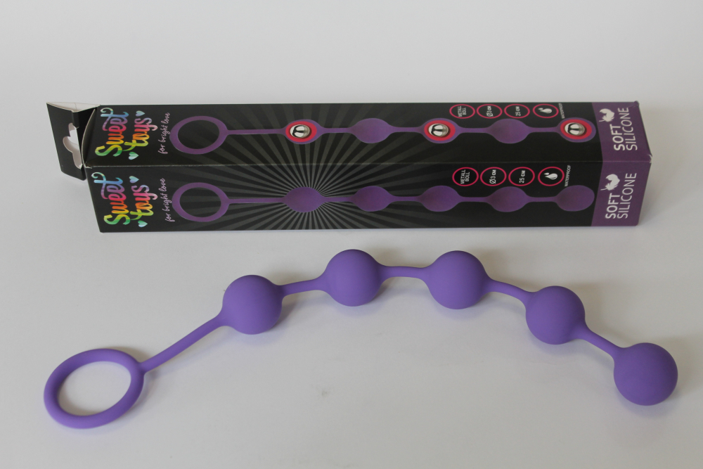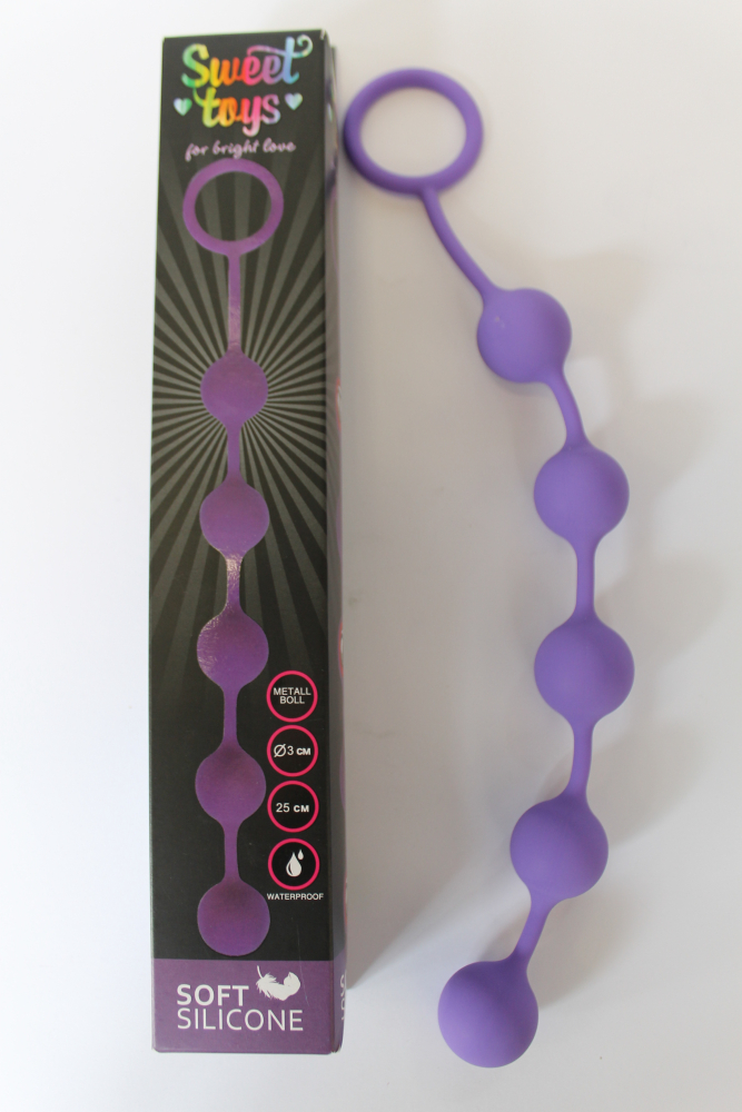 Характеристики Анальная цепочка силиконовая с металлическими шариками и кольцом-ограничителем SWEET TOYS фиолетовая L 25 см D 3,1 см
