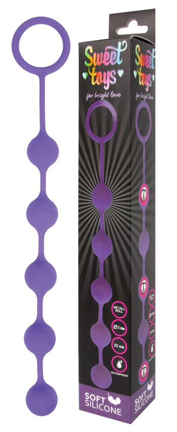 Анальная цепочка силиконовая с металлическими шариками и кольцом-ограничителем SWEET TOYS фиолетовая L 25 см D 3,1 см