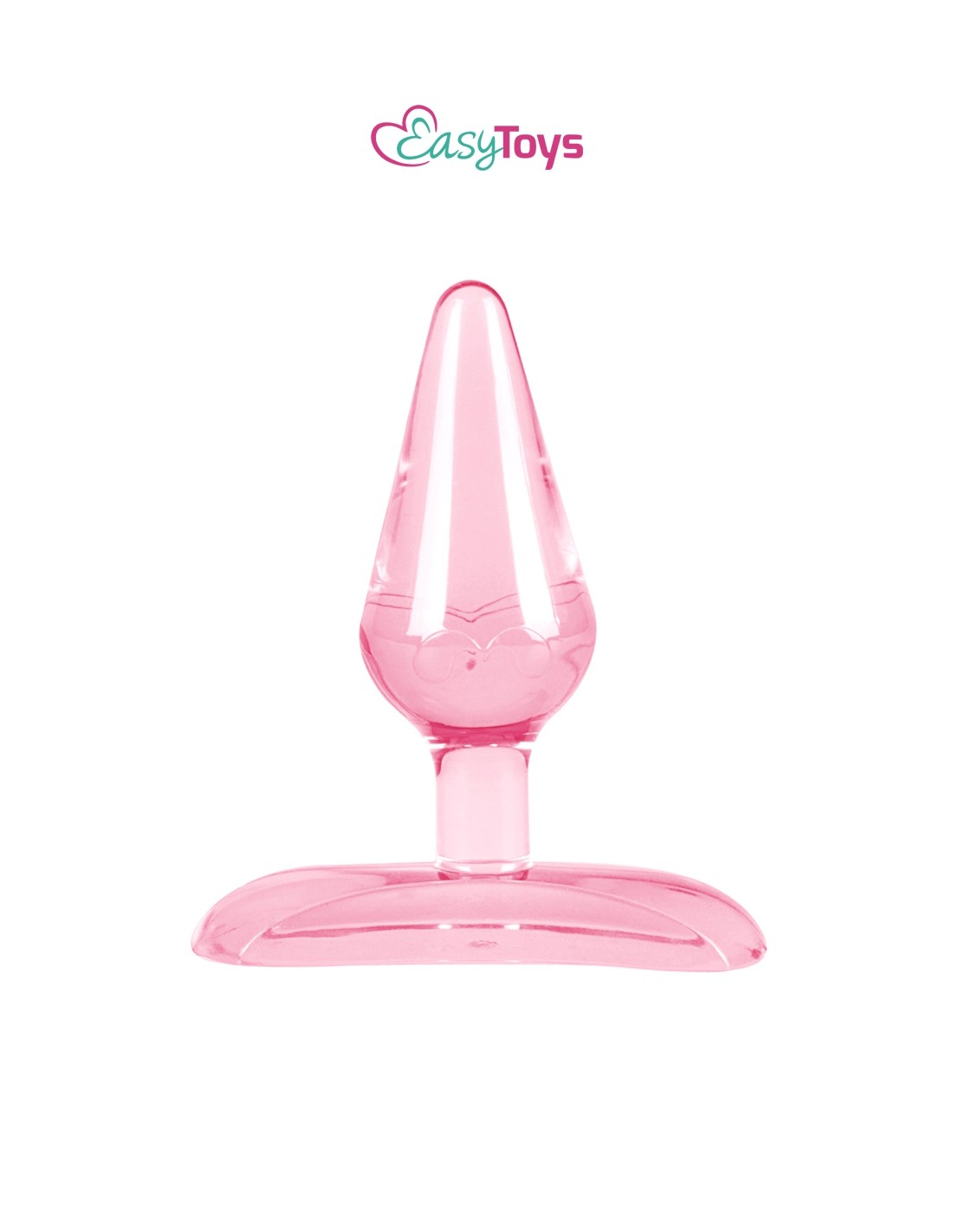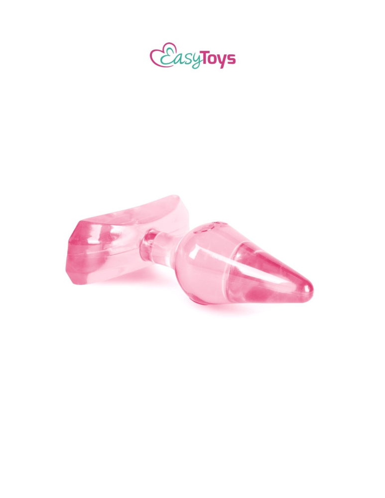 Гибкая розовая анальная пробка с узором «бабочка» и присоской.