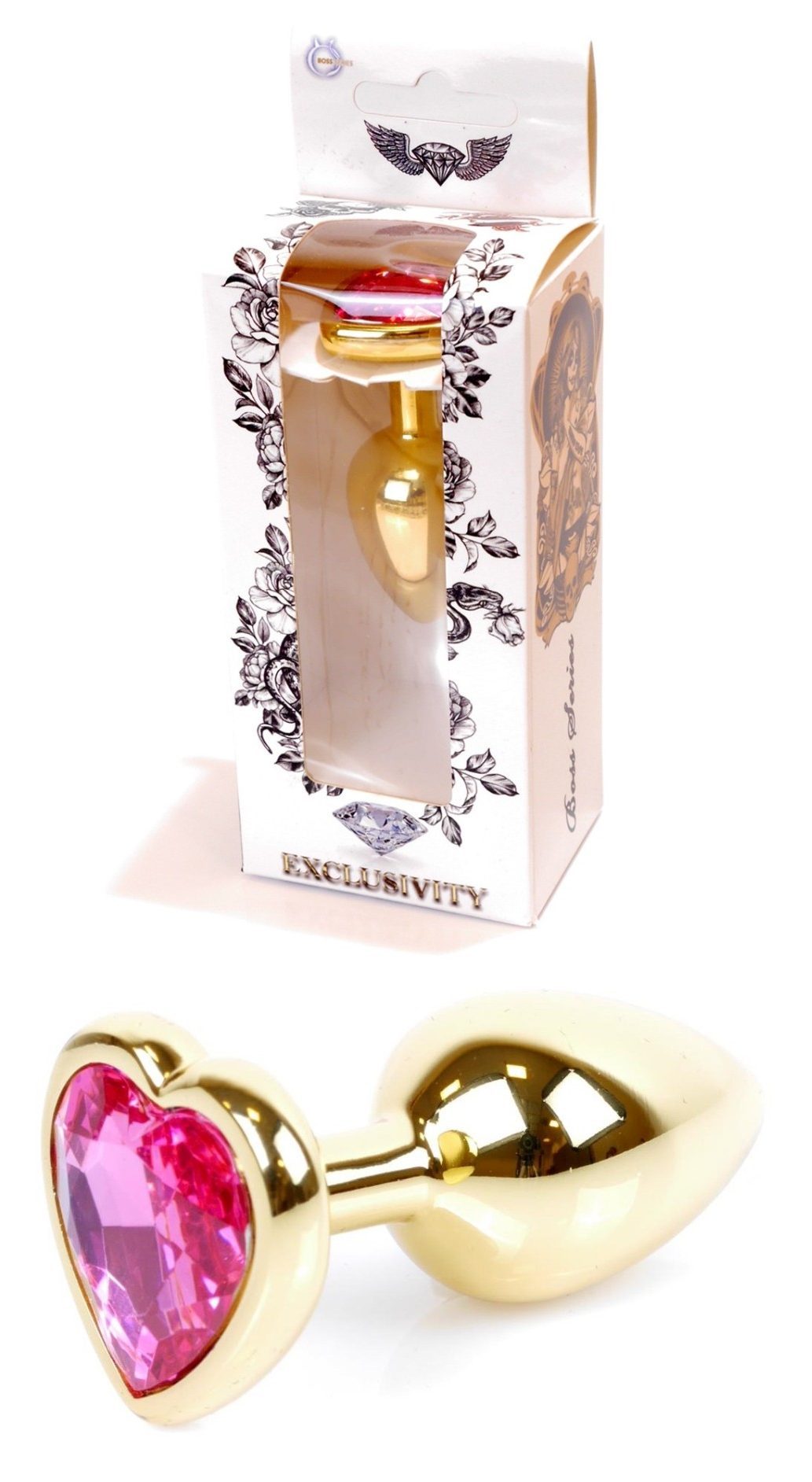 Анальная пробка S золотистого цвета с кристаллом в виде сердца малинового BOSS of TOYS Jewellery plug