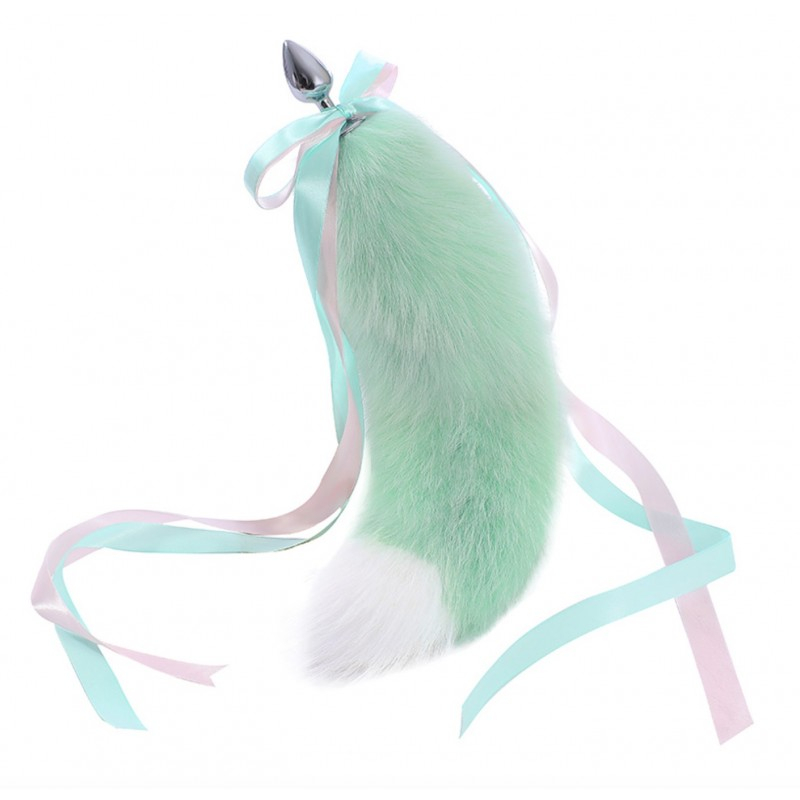 Анальная пробка из металла с длинным хвостом Bicolor Foxs Tail Plug 18.5 бирюзовый