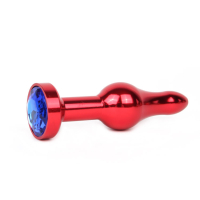 Анальная пробка металлическая JEWELRY красная L 10,3 см D 2,8 см с синим кристаллом