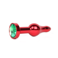 Анальная пробка металлическая JEWELRY красная L 10,3 см D 2,8 см с зеленым кристаллом