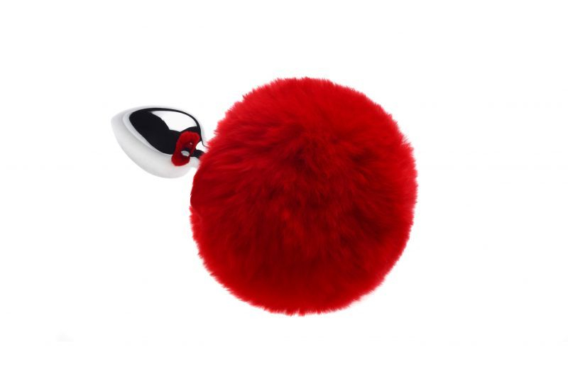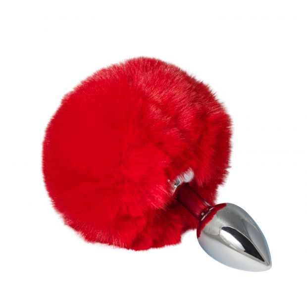 Анальная пробка металлическая серебристая с красным хвостиком Crystal размер S