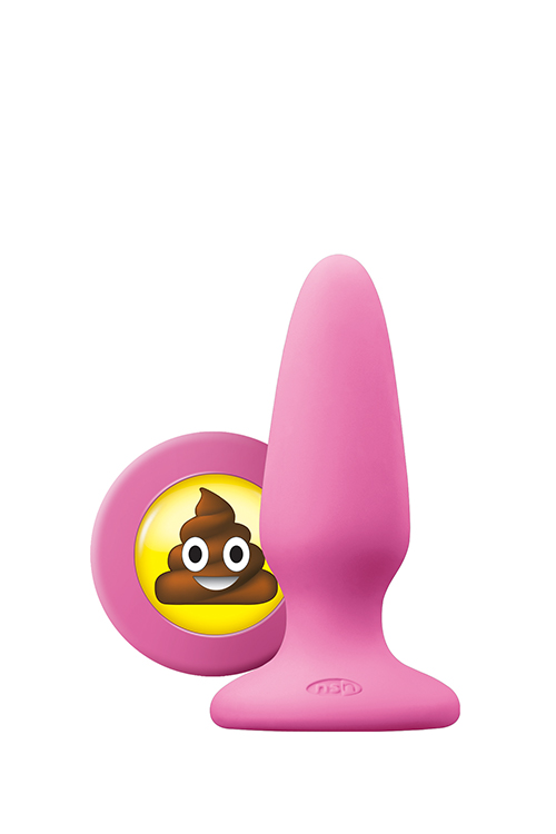 Анальная силиконовая пробка розового цвета с заглушкой смайликом NS Novelties Mojis ily sht medium