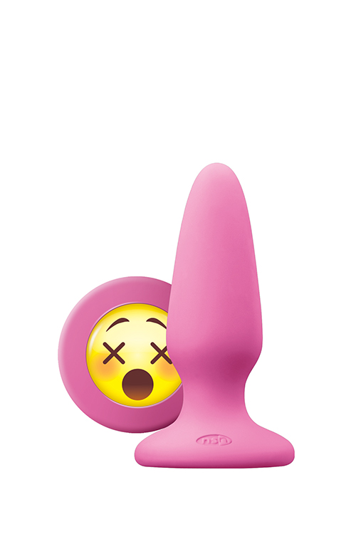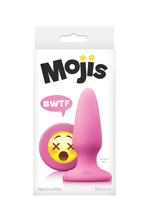 Анальная силиконовая пробка розового цвета с заглушкой смайликом NS Novelties Mojis wtf medium