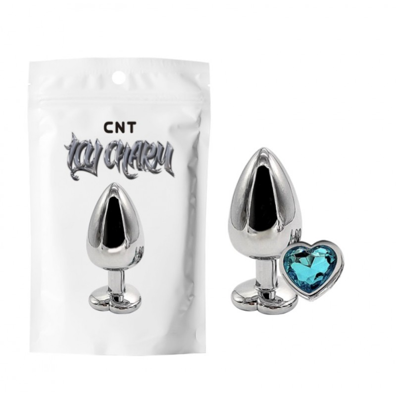 Характеристики Анальная пробка из медицинской стали серебристого цвета с голубым камушком в форме сердца Cnt Heart Gem