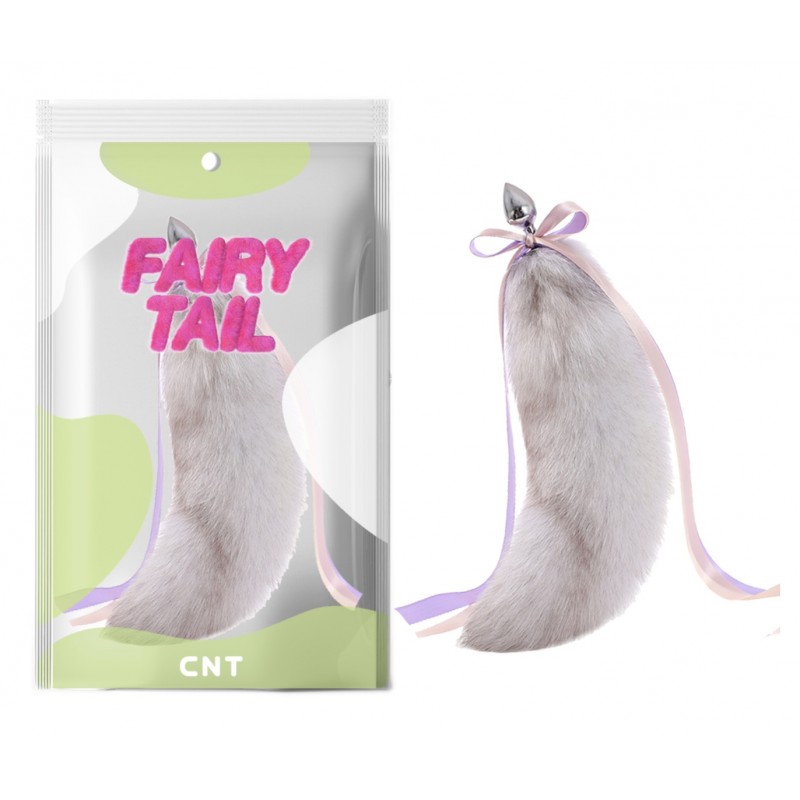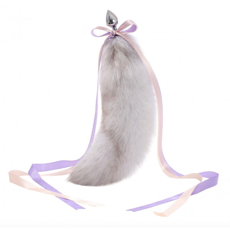 Анальная пробка с пушистым бело-серым хвостом Detachable Fluffy Fox Tail Plug
