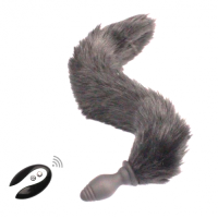 Анальная пробка с вибрацией с хвостом серого цвета и пультом управления Crystal