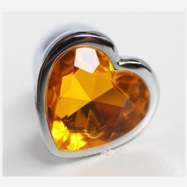 Анальная пробка металлическая серебристая с желтым камушком в виже сердечка Bdsm4u размер М