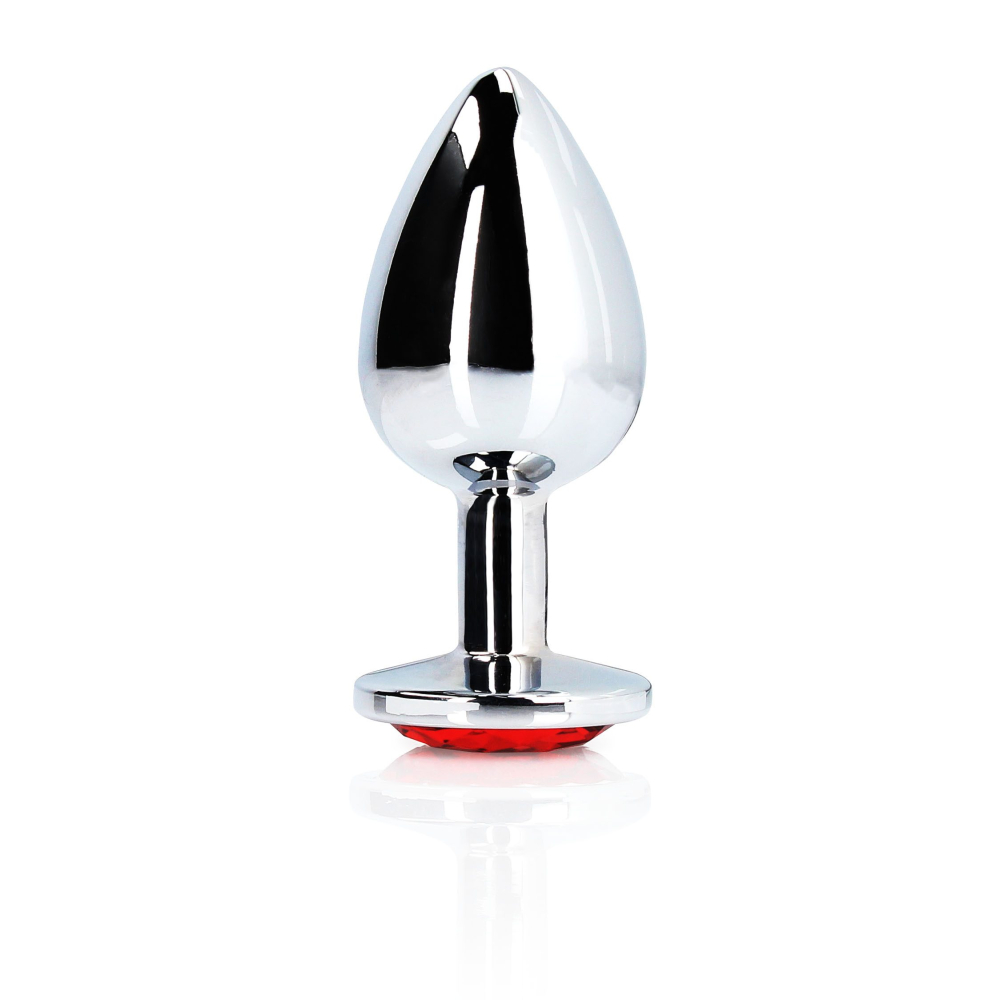Анальная пробка серебристая с красным камнем Round Gem размер М Ouch!