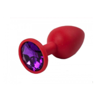 Анальная пробка силиконовая красного цвета с фиолетовым кристалом Crystal Amethyst размер M