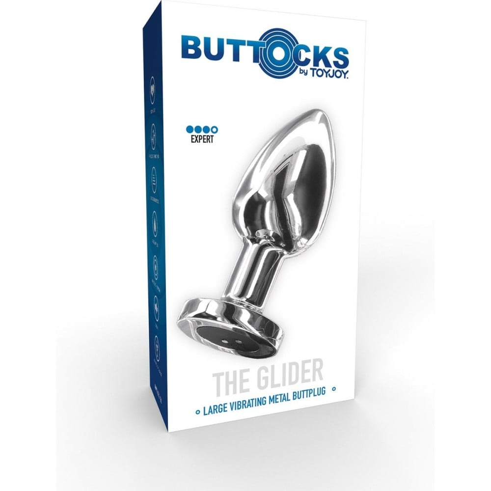 Анальная пробка с вибрацией ToyJoy The Glider, металлическая, серебряная, Large
