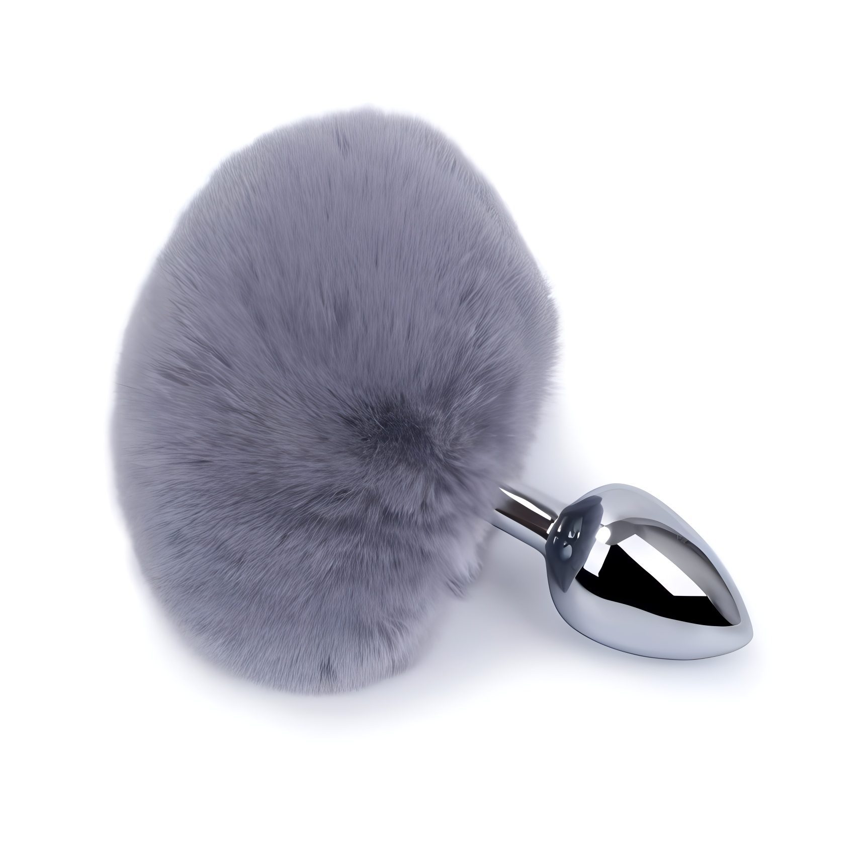 Анальная втулка металлическая с белым хвостиком зайки SKN-Z12 размер S