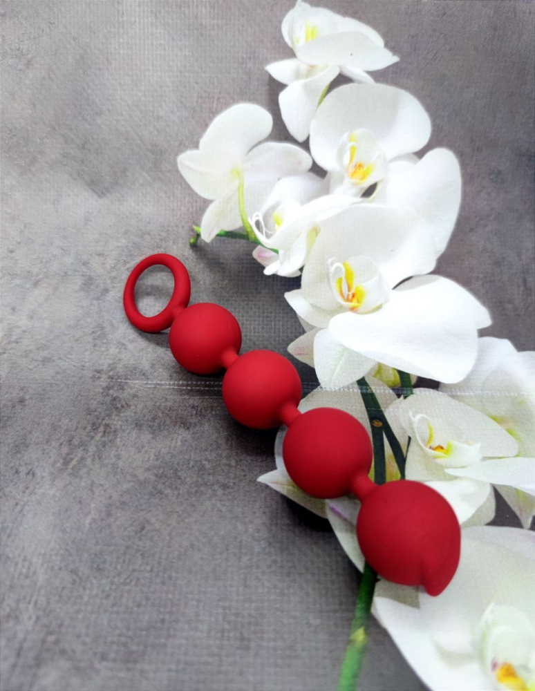 Анальная цепочка очень нежная, изготовленная из шелковистого силикона. Соединение бусин гибкое, а сами бусины – плотные, слегка упругие, комфортно чувствуются внутри. Литой силикон без швов! Надежно закрепленная рукоятка-стопер обеспечивает полную безопасность.