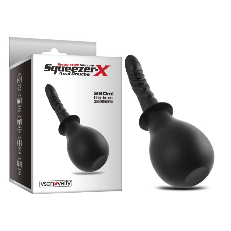 Анальный душ силиконовый черного цвета Vscnovelty Squeezer-X 280 мл