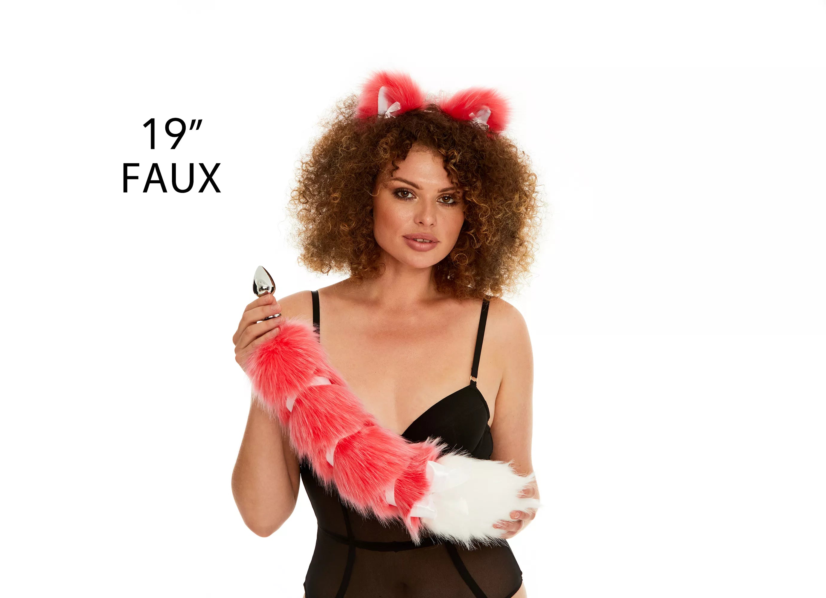 Анальный хвост с лентой без пробки Ярко-розовый с белым кончиком OKOVA 500 мм