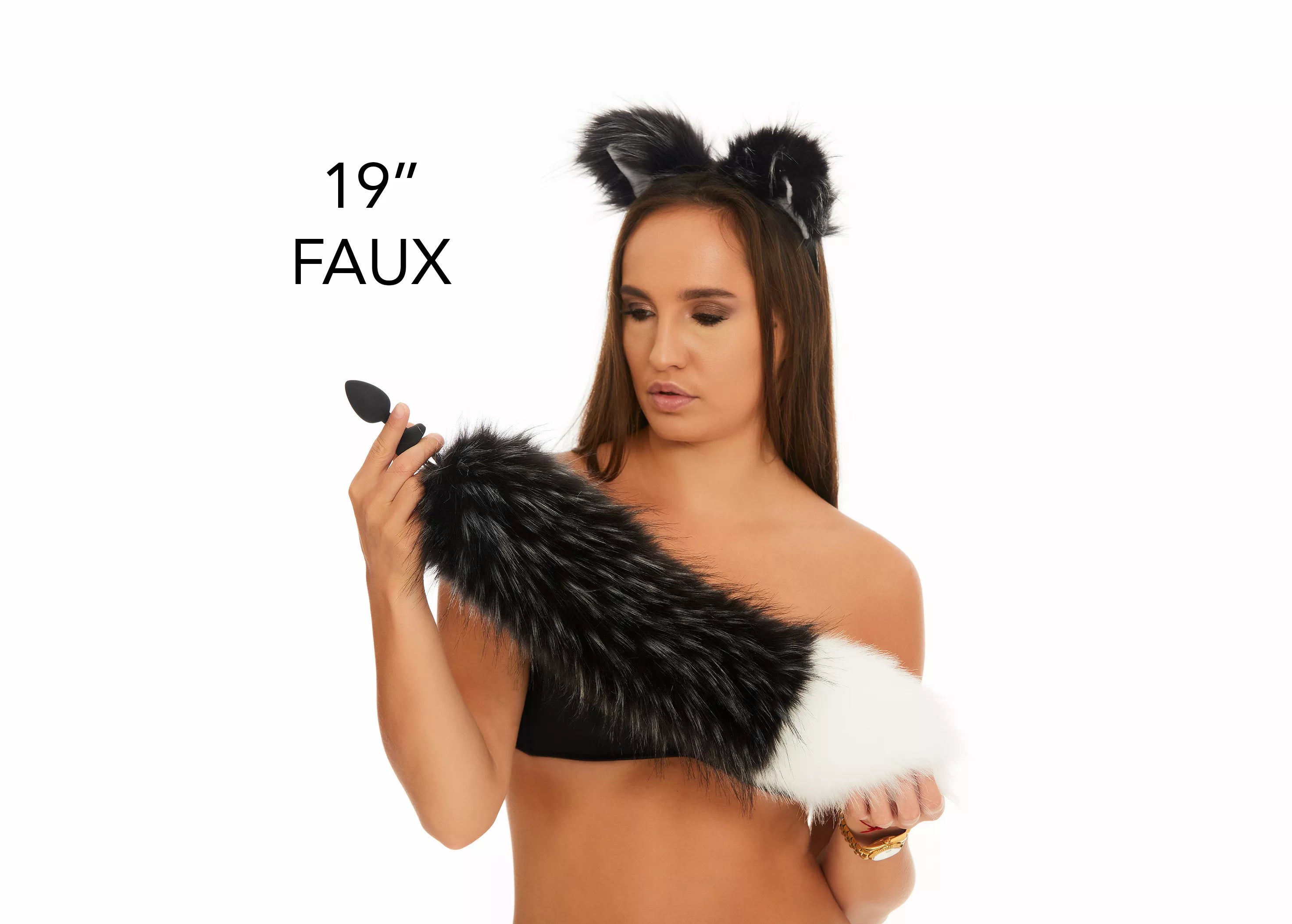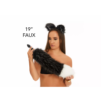 Анальный меховой хвост без пробки Чернобурый с белым кончиком OKOVA 500 мм
