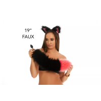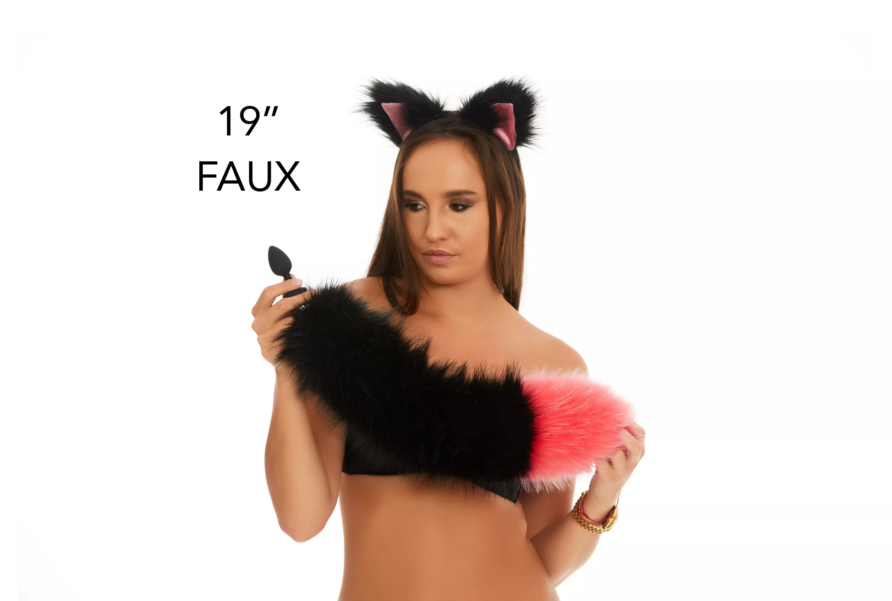 Анальный меховой хвост без пробки Черный с ярко розовым кончиком OKOVA 500 мм
