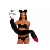 Характеристики Анальный меховой хвост без пробки Черный с темно красным кончиком OKOVA 1000 мм