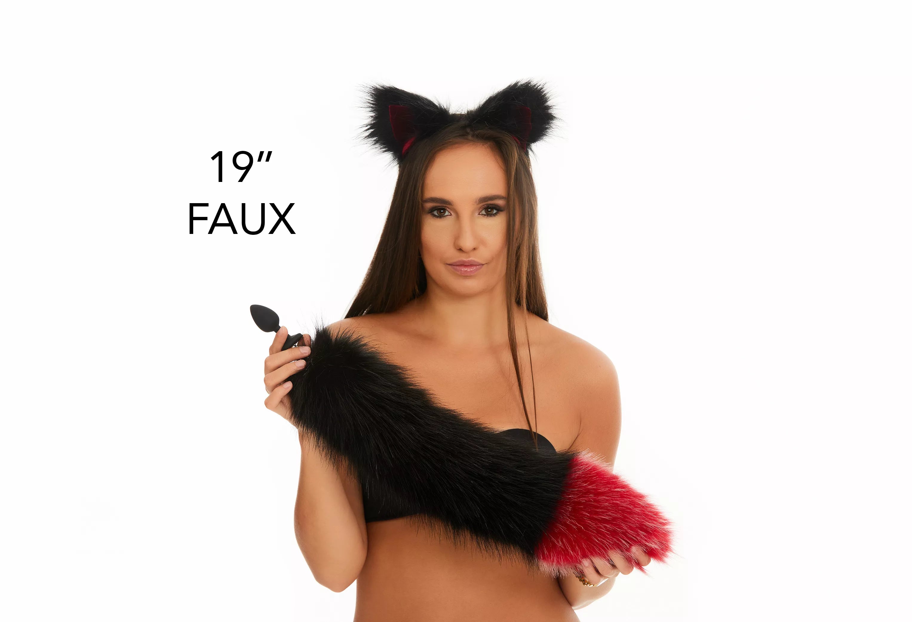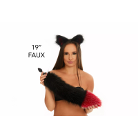 Характеристики Анальный меховой хвост без пробки Черный с темно красным кончиком OKOVA 500 мм