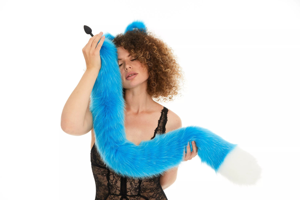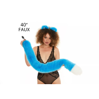 Характеристики Анальный меховой хвост без пробки Ярко голубой с белым кончиком OKOVA 1000 мм