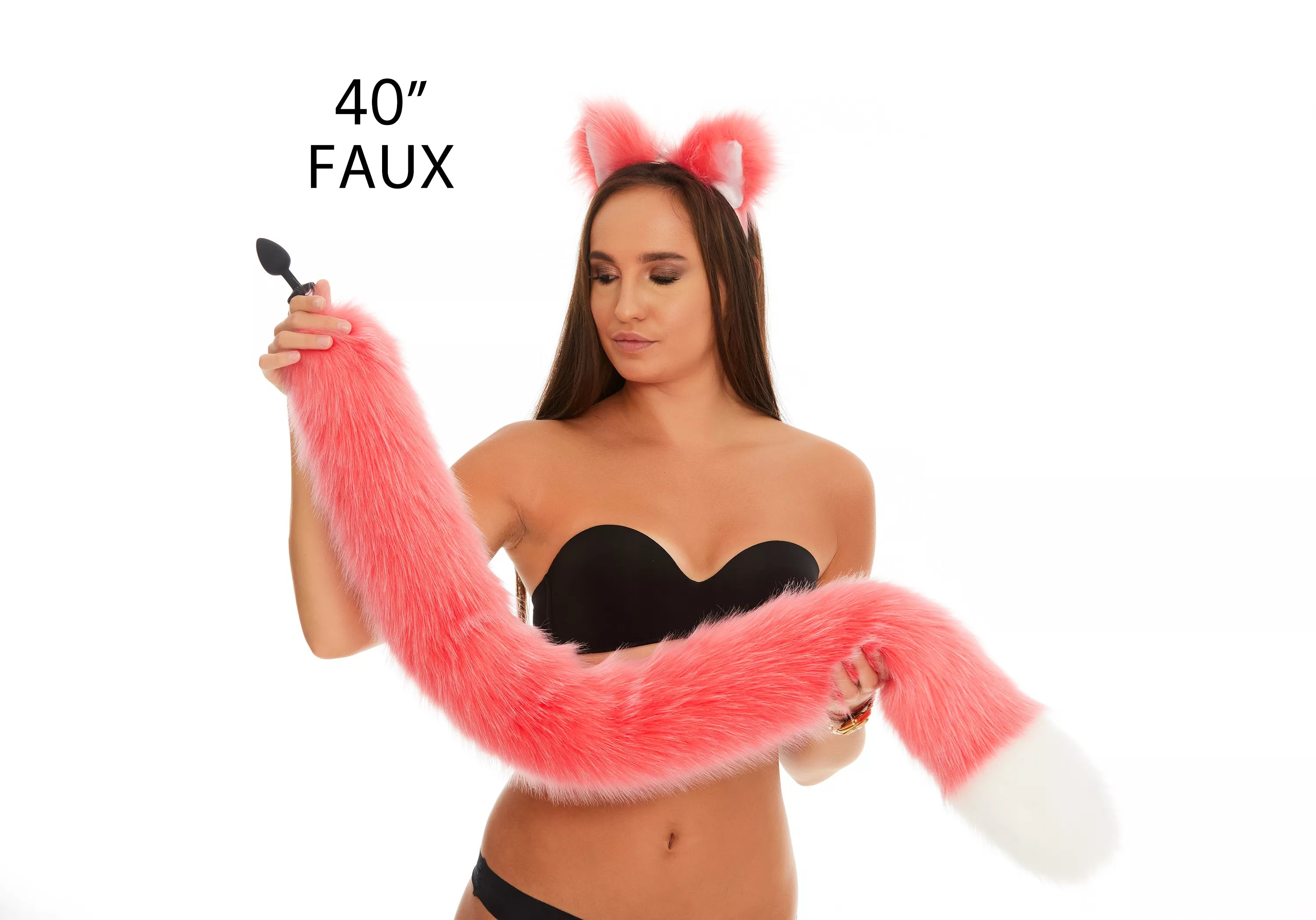 Характеристики Анальный меховой хвост без пробки Ярко розовый с белым кончиком OKOVA 1000 мм