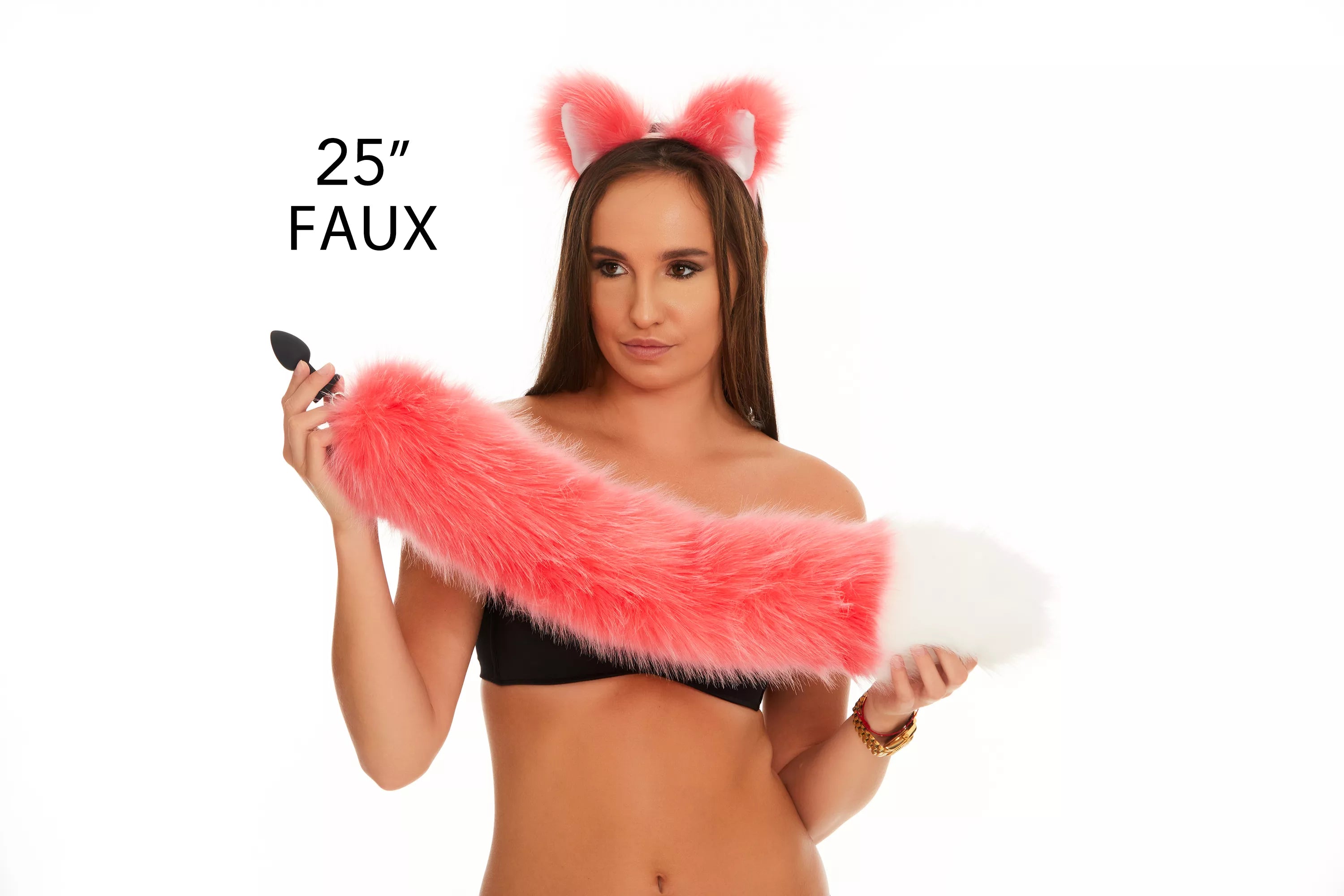 Характеристики Анальный меховой хвост без пробки Ярко розовый с белым кончиком OKOVA 600 мм