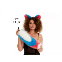Характеристики Анальный меховой хвост без пробки Трехцветный Белый Ярко голубой ярко розовый с белым кончиком OKOVA 500 мм