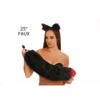 Характеристики Анальный меховой пушистый хвост без пробки Черный с темно красным кончиком OKOVA 600 мм