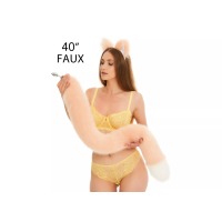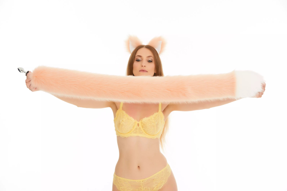 Характеристики Анальный меховой пушистый хвост без пробки Персиковый с белым кончиком OKOVA 1000 мм