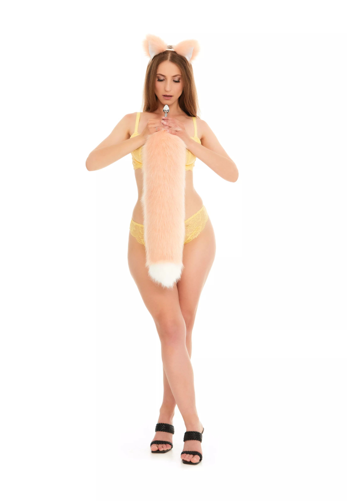 Анальный меховой пушистый хвост без пробки Персиковый с белым кончиком OKOVA 600 мм
