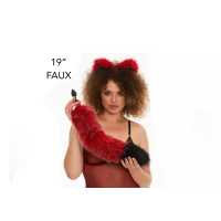 Характеристики Анальный меховой пушистый хвост без пробки Темно красный с черным кончиком OKOVA 500 мм
