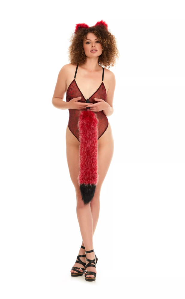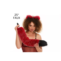 Характеристики Анальный меховой пушистый хвост без пробки Темно красный с черным кончиком OKOVA 600 мм