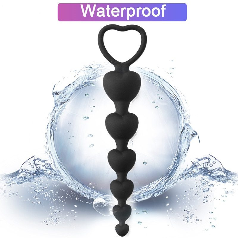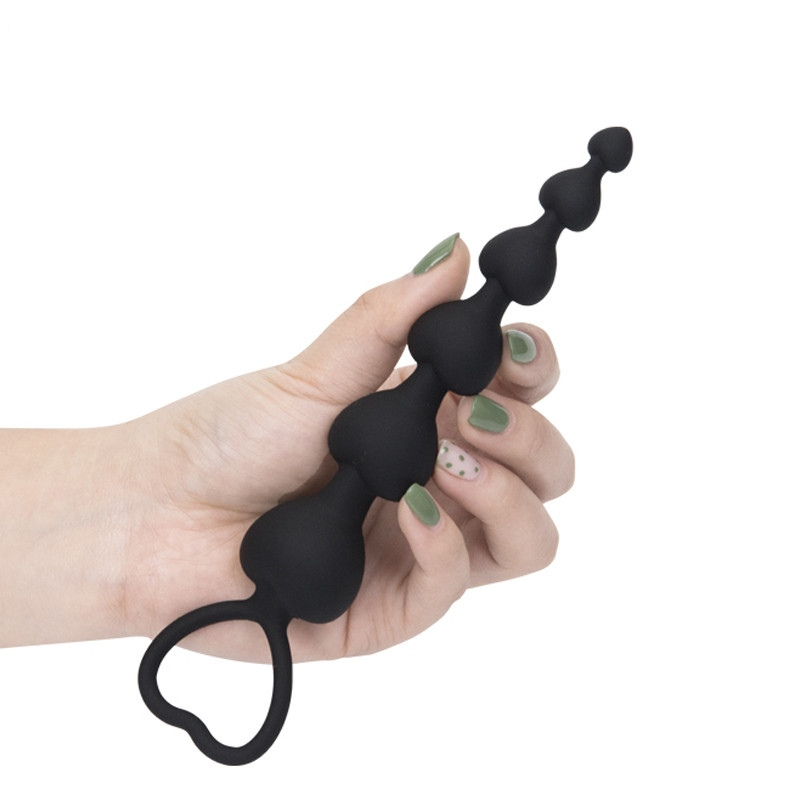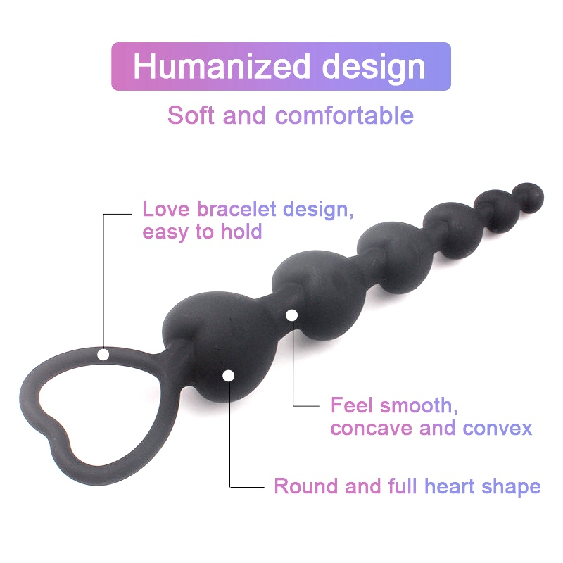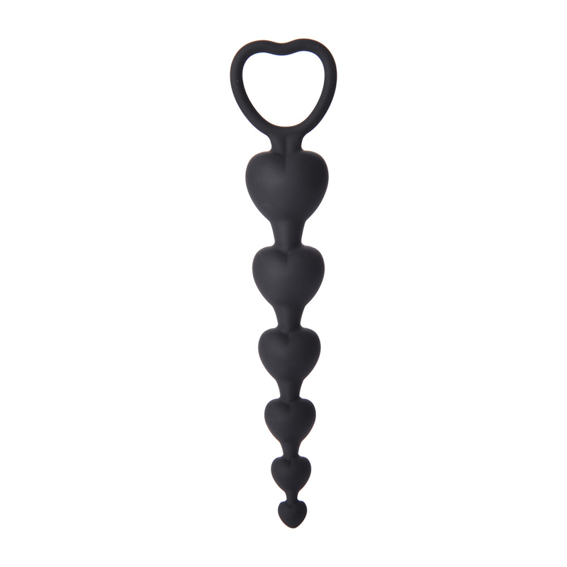 гипоаллергенного силикона в чёрном цвете. Игрушка полностью обтекаема, не впитывает смазку и не меняет структуру своего покрытия со временем. Стимулятор имеет форму ёлочки с бусинами, в виде сердечек разного диаметра, что обеспечивает безболезненное введение на комфортную вам глубину. Внизу симулятора расположено специальное кольцо-ограничитель: за него удобно держать во время анального массажа, а также оно служит для удобного изъятия.