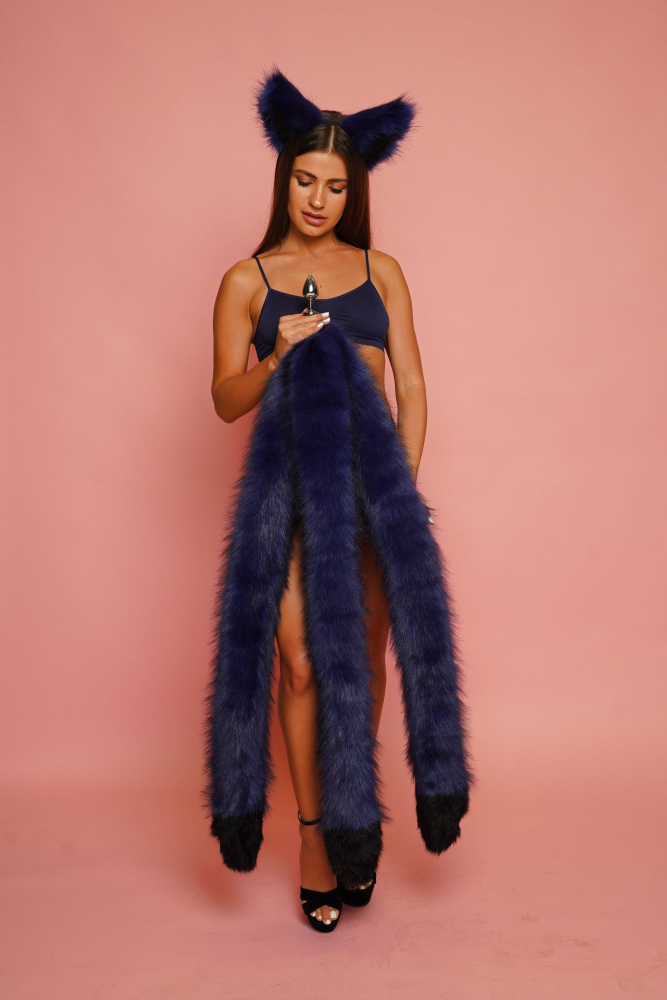 Характеристики Анальный тройной меховой хвост без пробки Синий с черным кончиком OKOVA 1000 мм