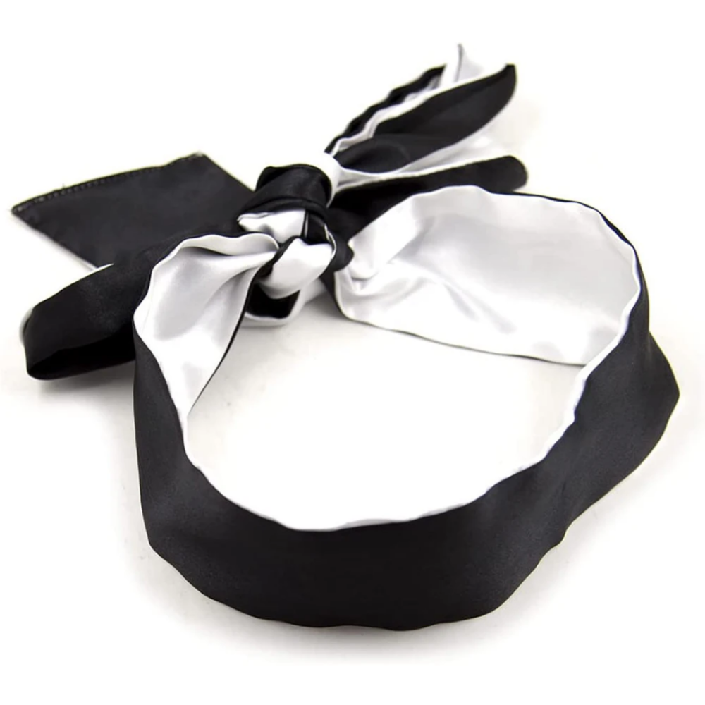 Атласная повязка БДСМ черно белого цвета Easy Life BDSM Desire