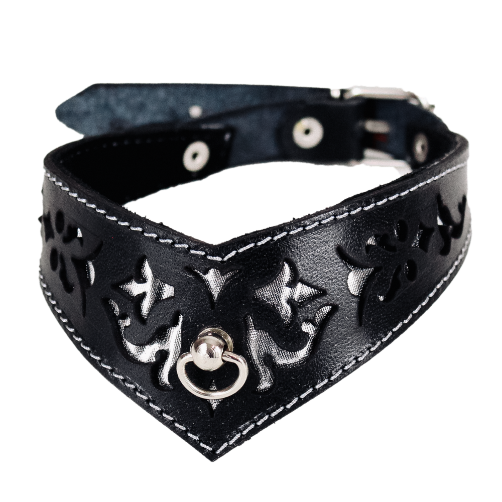 Ажурный кожаный ошейникМатериал: атуральная кожа и качественная металлическая фурнитураРазмер: XS-S-M-L-XL-XXLОшейник: ширина 4.5 см