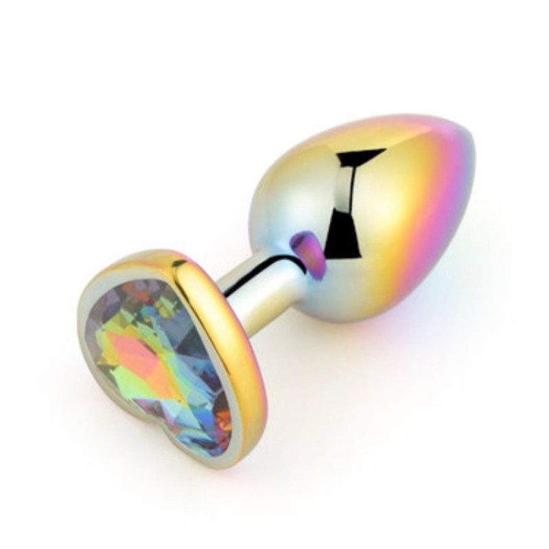 Характеристики Анальная пробка с камушком в форме сердечка разноцветная Bdsm4u размер Medium