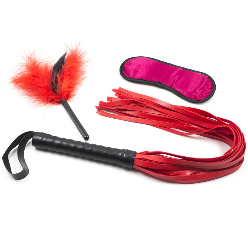 любовное пламя и пробудит самые похотливые желания. Она создана для ярких и амбициозных личностей, которые не терпят компромиссов и ограничений. Стильный БДСМ-комплект выполнен из высококачественных материалов и обладает огромным потенциалом. Каждое изделие отличается восхитительным дизайном и элегантным исполнением. В этой коллекции вы найдете метелочку с пушистыми перьями для чувственной прелюдии «с огоньком» и роскошную плеть для более интенсивной стимуляции. Только вам решать, наказать или поощрить партнера. Плеть состоит из множества хвостов в красном оттенке и крепкой рукоятки с петелькой в черном цвете. Дополняет набор светонепроницаемая маска на глаза. Она поможет обострить ощущения и может выступать аксессуаром не только для интимных игр, но и для хорошего сна.