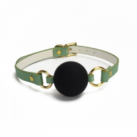 Кляп шарик в рот БДСМ силиконовый черного цвета с зеленым ремешком Bdsm4u