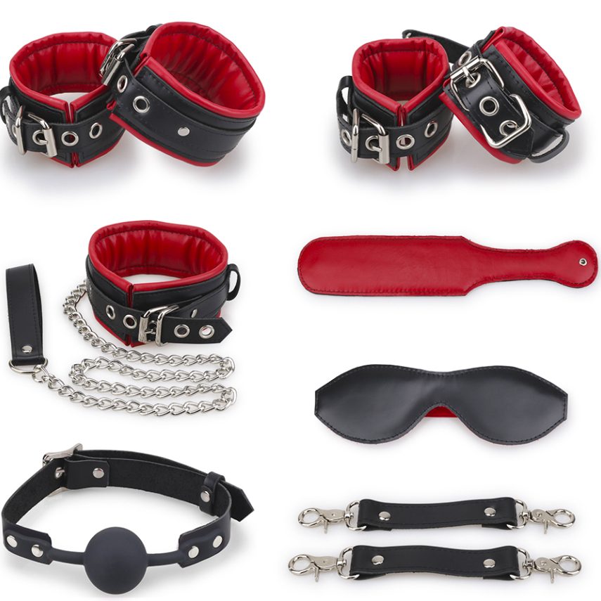 Набор БДСМ из натуральной кожи черно красного цвета Runyu Humbe 7 предметов