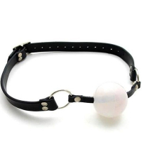 Классический удобный кляп для рта с регулируемым прочным ремешком и белым пластиковым шариком. Высококачественный материал.