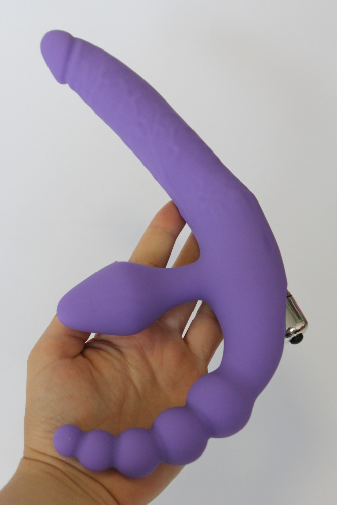 Без ременной страпон с елочкой и анальной втулкой с вибрацией L 7x10x15 см D 1,6x2,1x3x2,9x3,4 см фиолетовый