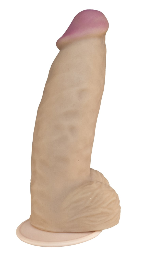 Огромный реалистичный фаллоимитатор телесного цвета на присоске. Имеет форму члена с мошонкой и ярко-выраженной розовой головкой. Необычайно приятный, упругий, рельефный, выполненный из Киберкожи, не имеет швов. Имеет ребристую поверхность для дополнительной стимуляции.