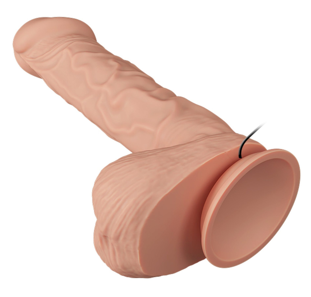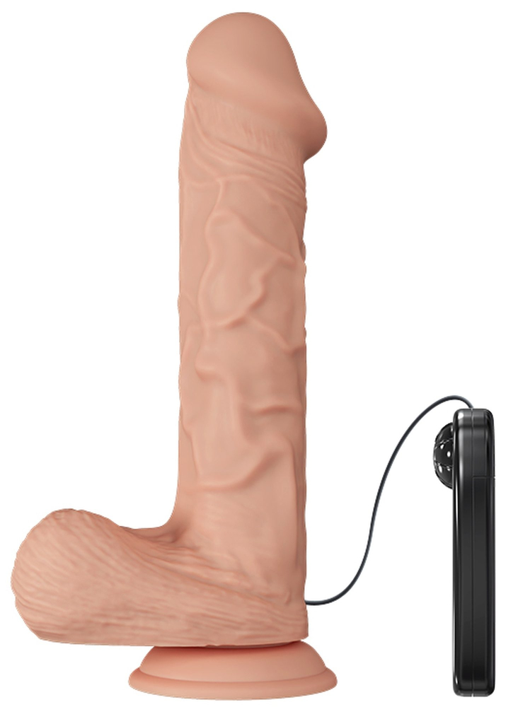 Вибратор на присоске изготовлен из реалистичного материала, максимально приближенного к человеческой коже, с бесступенчатой регулировкой вибрации.