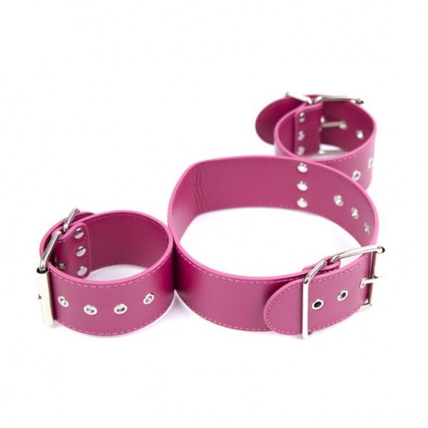 Кожаные оковы с ошейником розового цвета для БДСМ игр