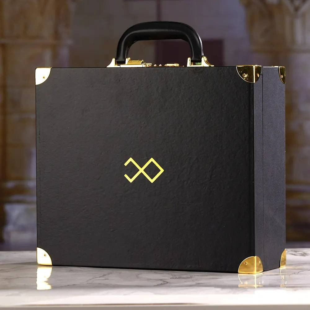 Этот набор – настоящий колодец удовольствия, представленный в стильном чемодане на замке.